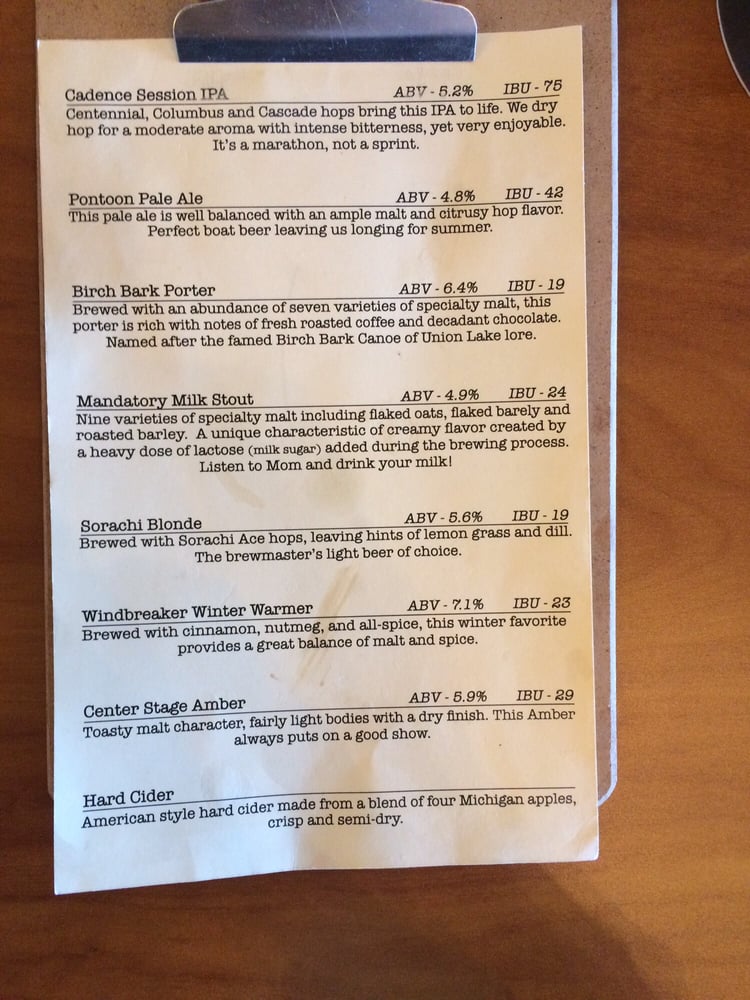 Abv-.% ibu- this pale ale is well balanced with an ample malt and citrusy hop flavor. The perfect boat beer leaving us longing for summer.