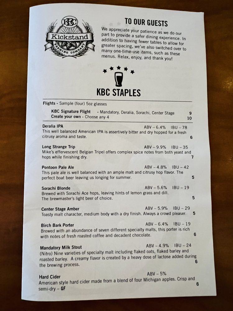 Kickstand Brewing Company is a trendy brewery and bar located in Commerce Township, MI. Offering a variety of vegan options, limited vegetarian choices, and even cryptocurrency payment, this spot caters to a diverse crowd. The atmosphere is laid back, with live music and happy hour specials adding to the experience. Customers rave about the service and the extensive beer selection, although some dishes like the beer cheese and house burger have received mixed reviews. Nonetheless, the sliders, chicken tenders, and truffle gnocchi stand out for their delicious flavors. Overall, Kickstand Brewing Company is a great place to grab a drink, enjoy good food, and soak in the fun and welcoming ambiance.
